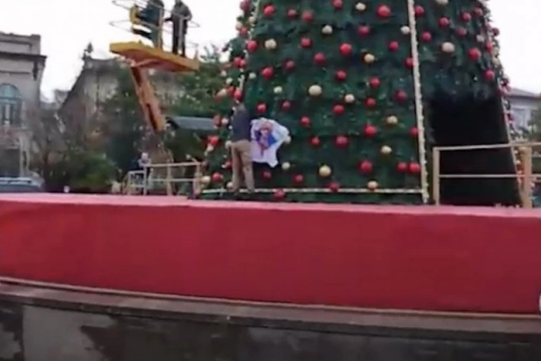 Sama zastava je data komunalcima koji su sa velikim zadovoljstvom postavili istu na samu novogodišnju jelku.