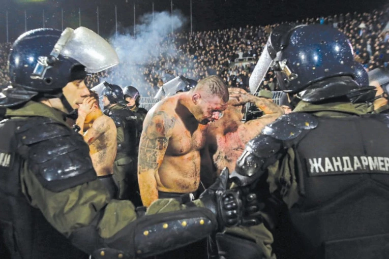 Foto: StarsportNavijači Crvene zvezde su u tim trenucima krenuli sa bakljadom, a na južnoj tribini došlo je nereda i tuče. Hrvatski huligani su krenuli u akciju, ali su loše prošli pošto su ih ostali navijači prebili, ispekli bakljama i svukli ih gole. Oni su potom izbačeni na atletsku stazu gde je ih uhapsila policija.