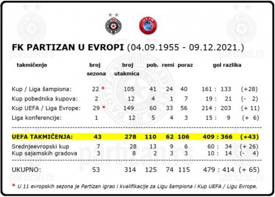Nemojmo nikako potcenjivati sve ovo što se sa nama u Evropi desilo nakon povratka u istu, nakon građanskih ratova na području bivše Jugoslavije u poslednjoj deceniji XX veka. Čak i letimičan pogled na gornju grafiku je dovoljan da se vidi da je Partizan zabeležio veliki povratak, da taj trend ohrabruje, uprkos svemu…To „uprkos svemu“ podrazumeva razne vrste frustracija kroz koje smo svi mi koji volimo ovaj klub u međuvremenu prošli – a dešavali su se recimo bečki Rapid, praška Slavija, Artmedija, Petah Tikva, Zrinjski, Šamrok, Augsburg, Zaglebje ili AZ Alkmar u prokletom Hagu…da bi nas onaj „gore“ u jednom trenutku pogledao tog 09.12.2021, negde oko nadoknade vremena protiv Kiprana u Humskoj, pa kao da je rekao „e, dosta je bilo, ovaj put sam uz njih“…valjda smo zaslužili…