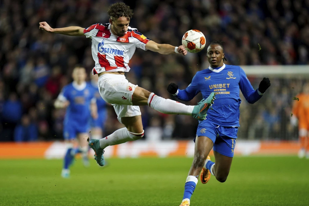Fudbaleri Crvene zvezde poraženi su od Rendžersa na "Ajbroksu" rezultatom 3:0 u prvom meču osmine finala Lige Evrope.