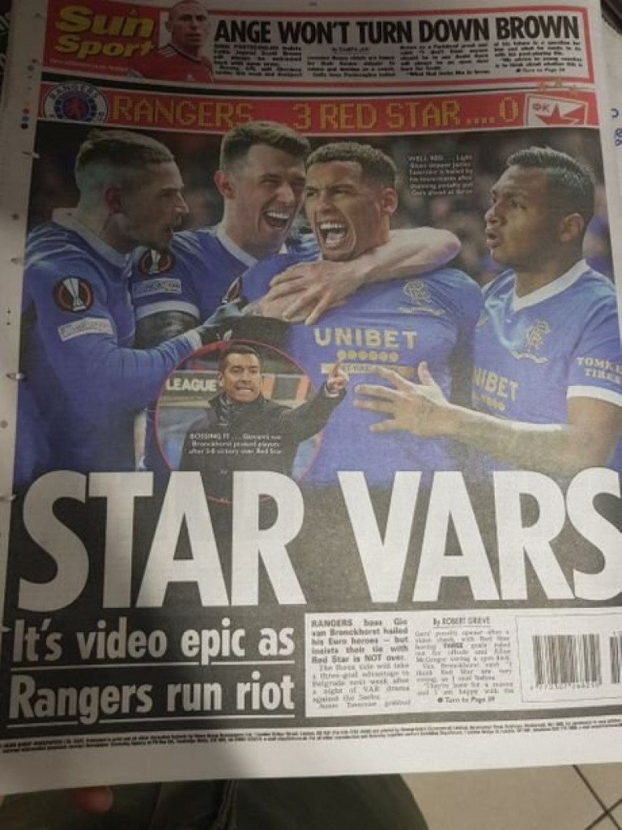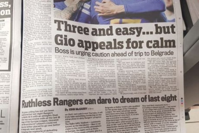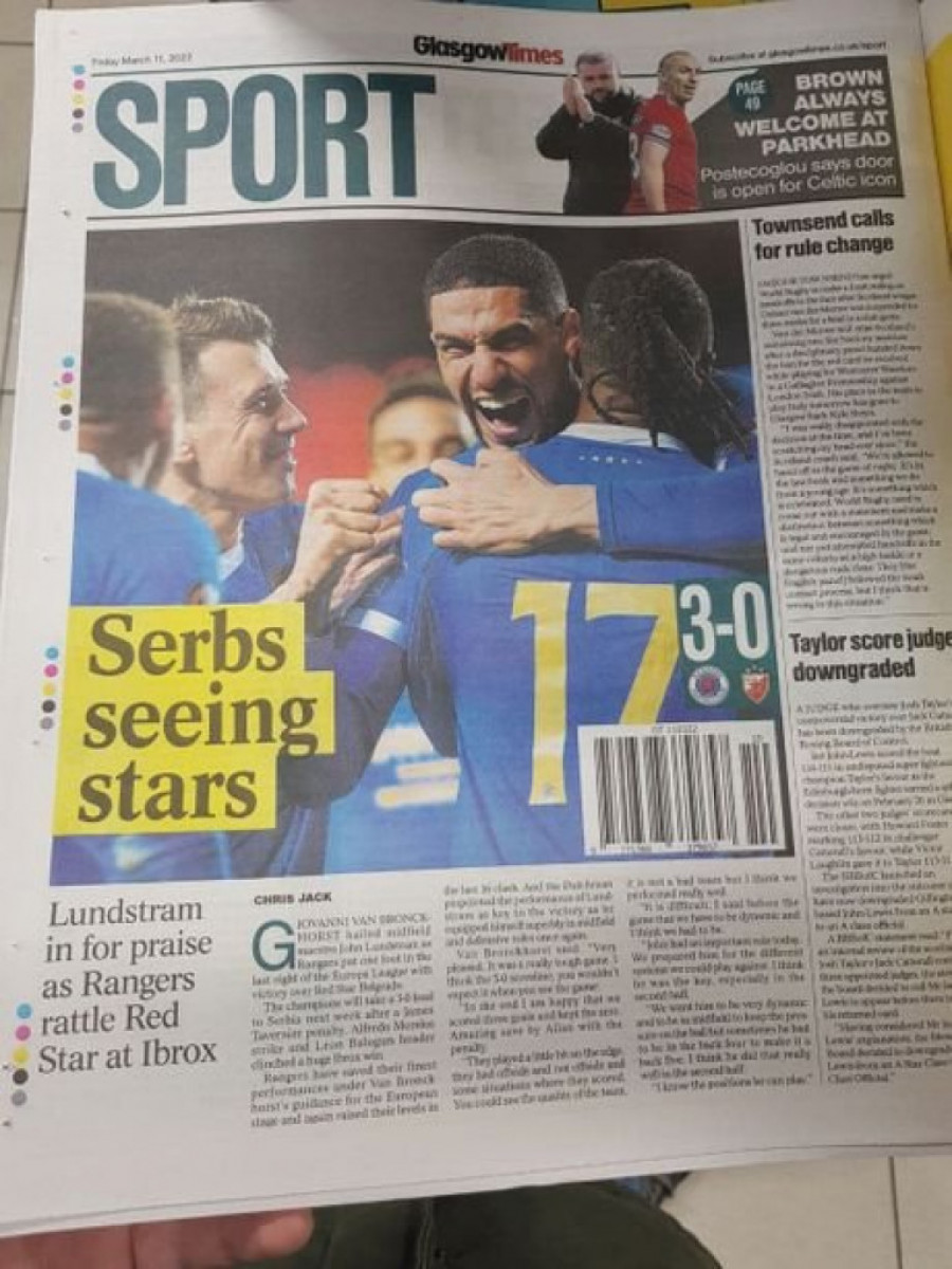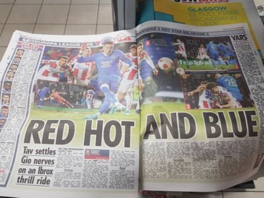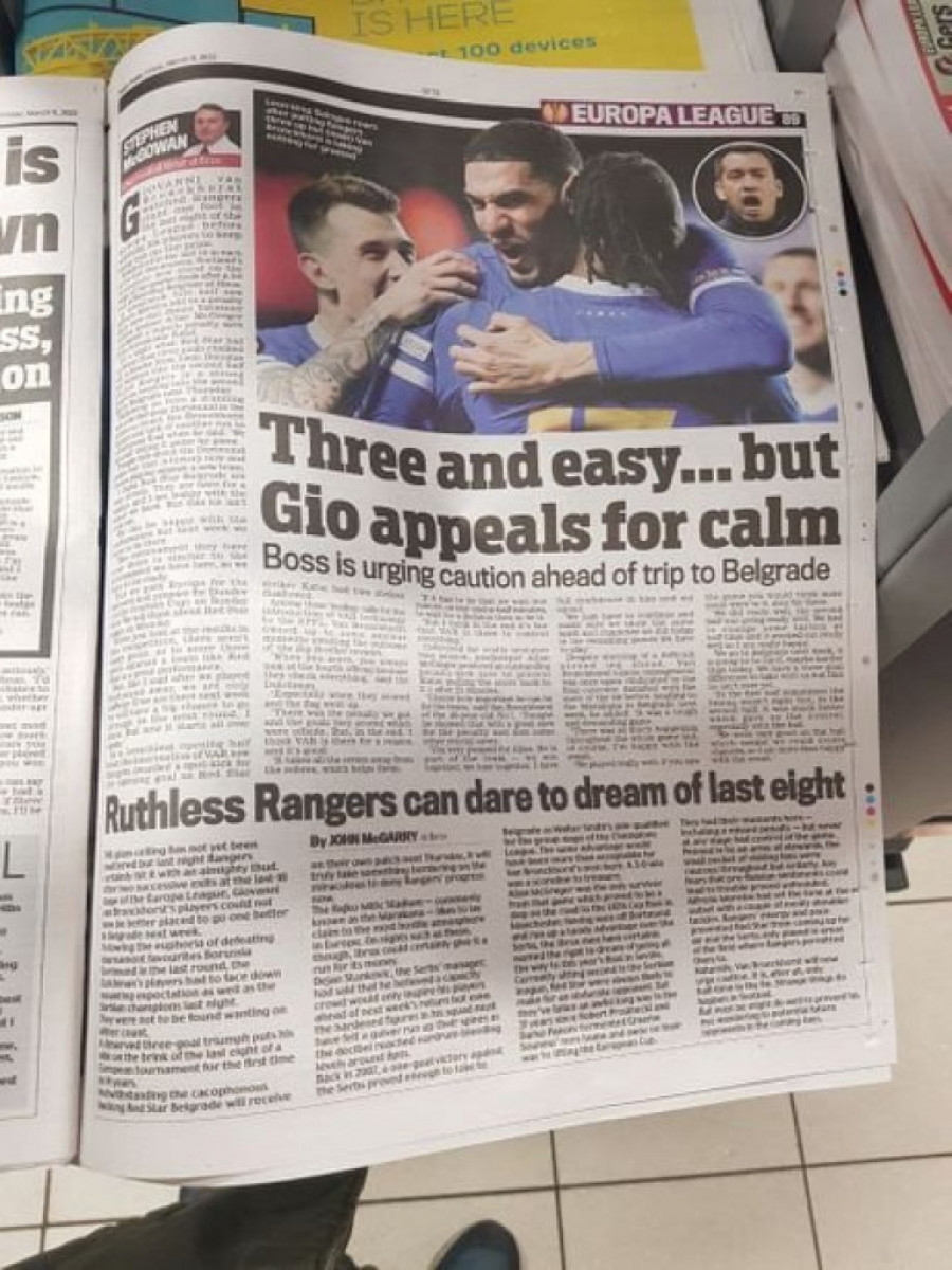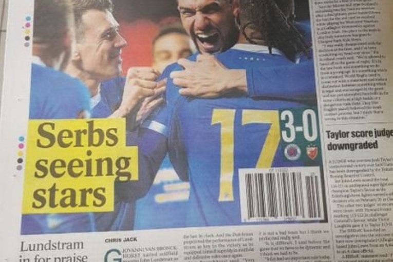 Sasvim je jasno da su današnji škotski mediji već prežalili Crvenu zvezdu. Gotovo da niko u škotskoj štampi ne sumnja u overavanje trijumfa u Beogradu, a jedini koji donekle poziva na oprez je trener Rendžersa, Đovani van Bronhorst.