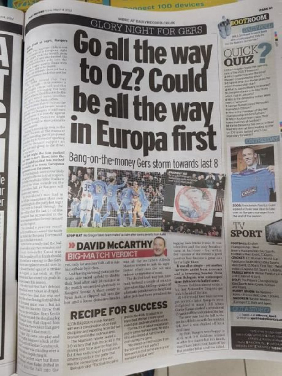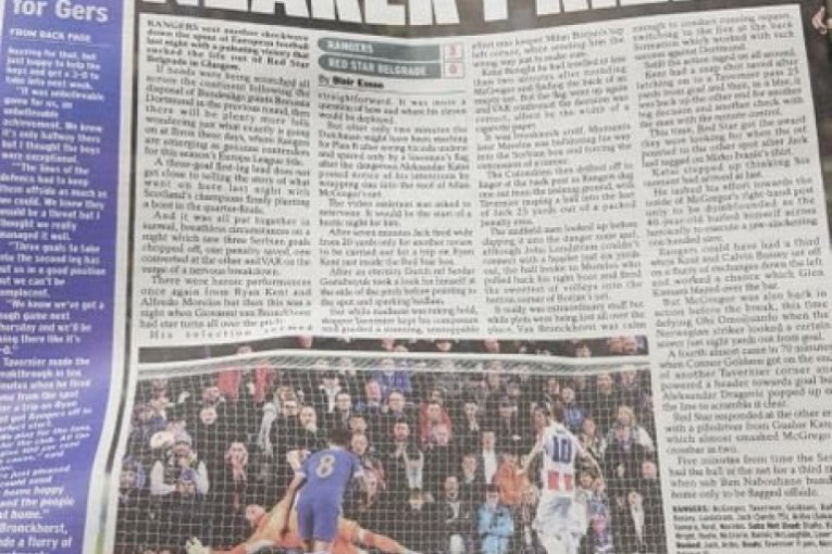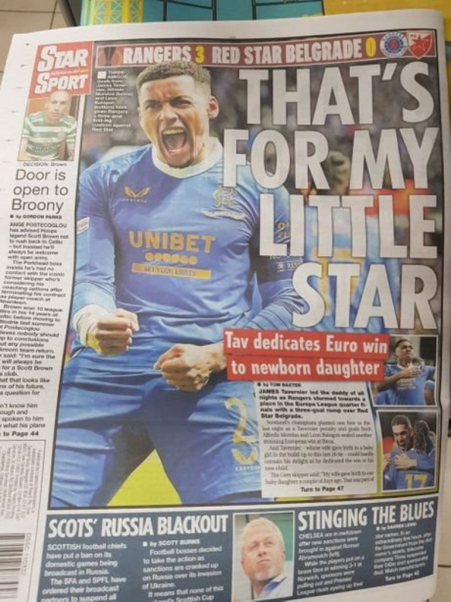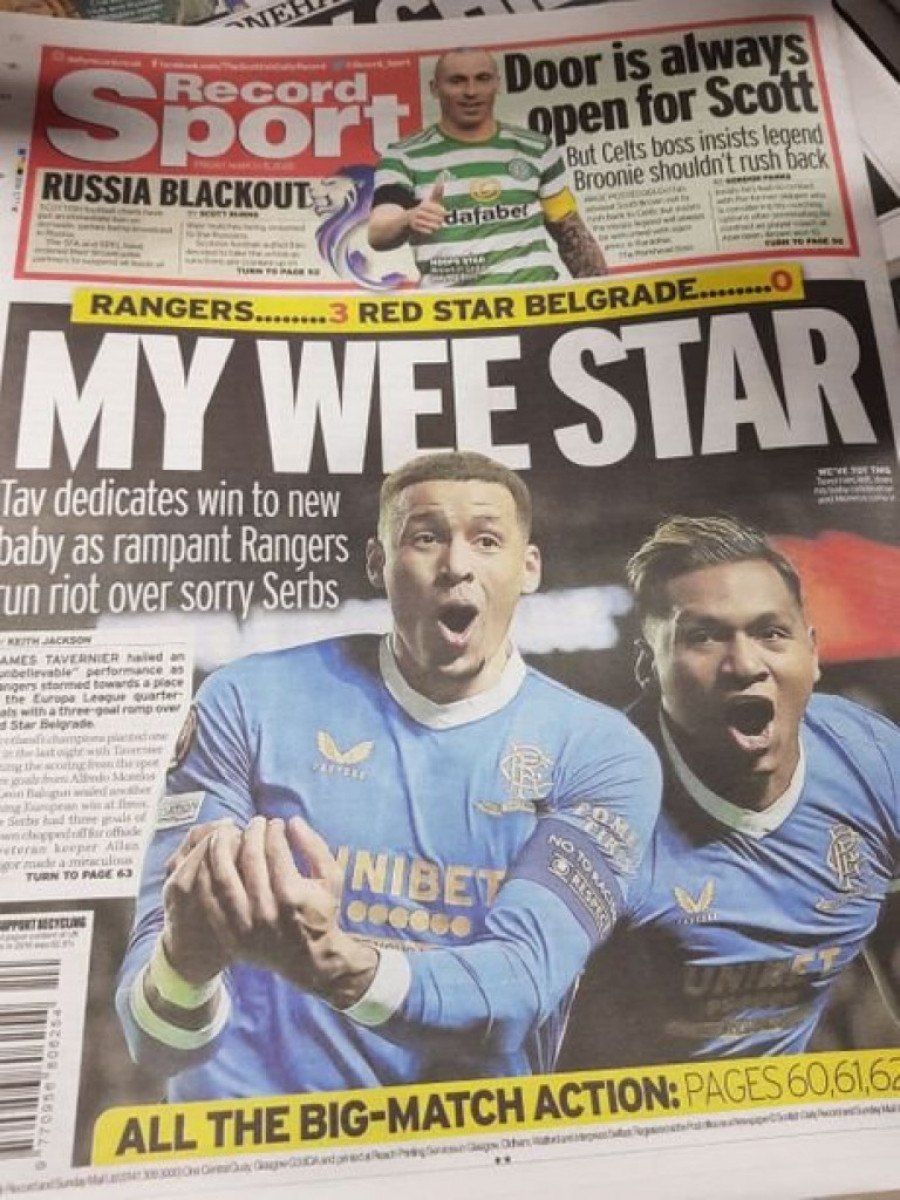 Sasvim je jasno da su današnji škotski mediji već prežalili Crvenu zvezdu. Gotovo da niko u škotskoj štampi ne sumnja u overavanje trijumfa u Beogradu, a jedini koji donekle poziva na oprez je trener Rendžersa, Đovani van Bronhorst.