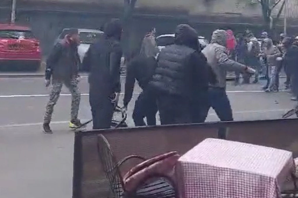 Kako se može videti na snimku, sukob je izbio na uglu Pasterove i Resavske ulice, a navijači su u tuči koristili motke, kaiševe, ali i stolice jednog objekta pored kog se sve dešavalo.