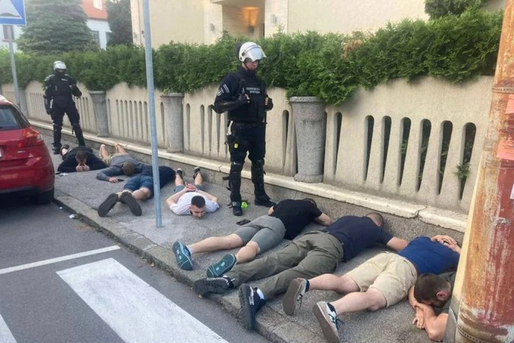 Policija je objavila i fotografiju na kojoj se mogu videti uhapšeni navijači kako leže poređani poput sardina.