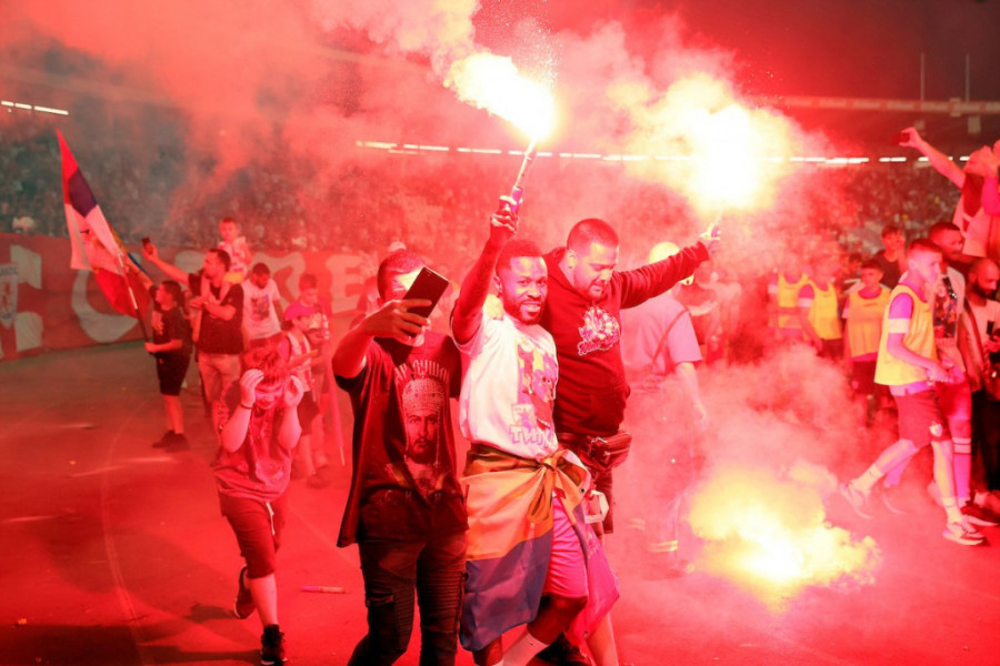 Crvena zvezda proslavlja 33. titulu u istoriji kluba. Trener Dejan Stanković, kapiten Milan Borjan i svi igrači u crveno-beloj opremi doneli su mnogo radosti simpatizerima ovog kluba, pa ne čude ni slike iz kancelarija stadiona "Rajko Mitić", gde je novi trofej proslavljen u pesmu i veselje.