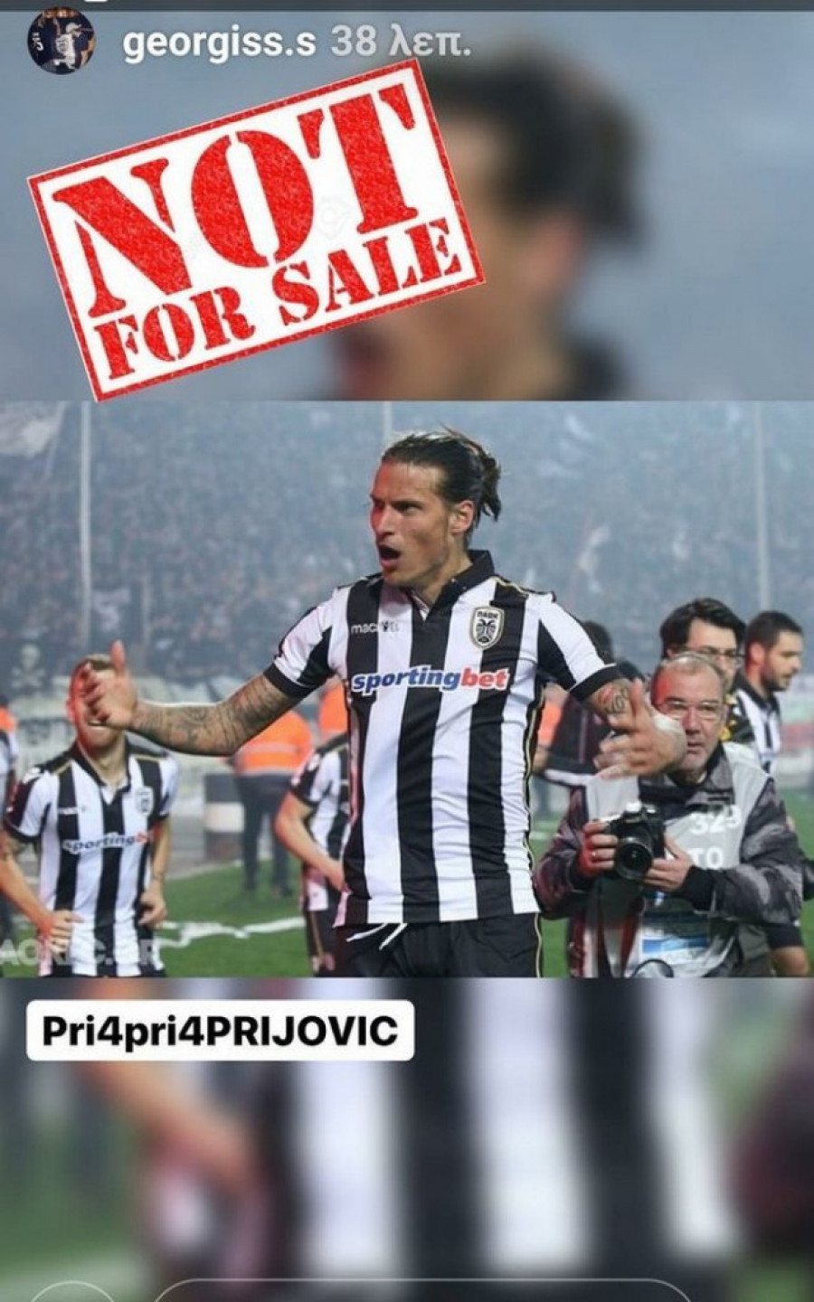 Foto: twitter.com/PAOK_FCSavidis je na svom "Instagram" profilu okačio fotografiju srpskog napadača uz natpis: "Not for sale" (Nije na prodaju).