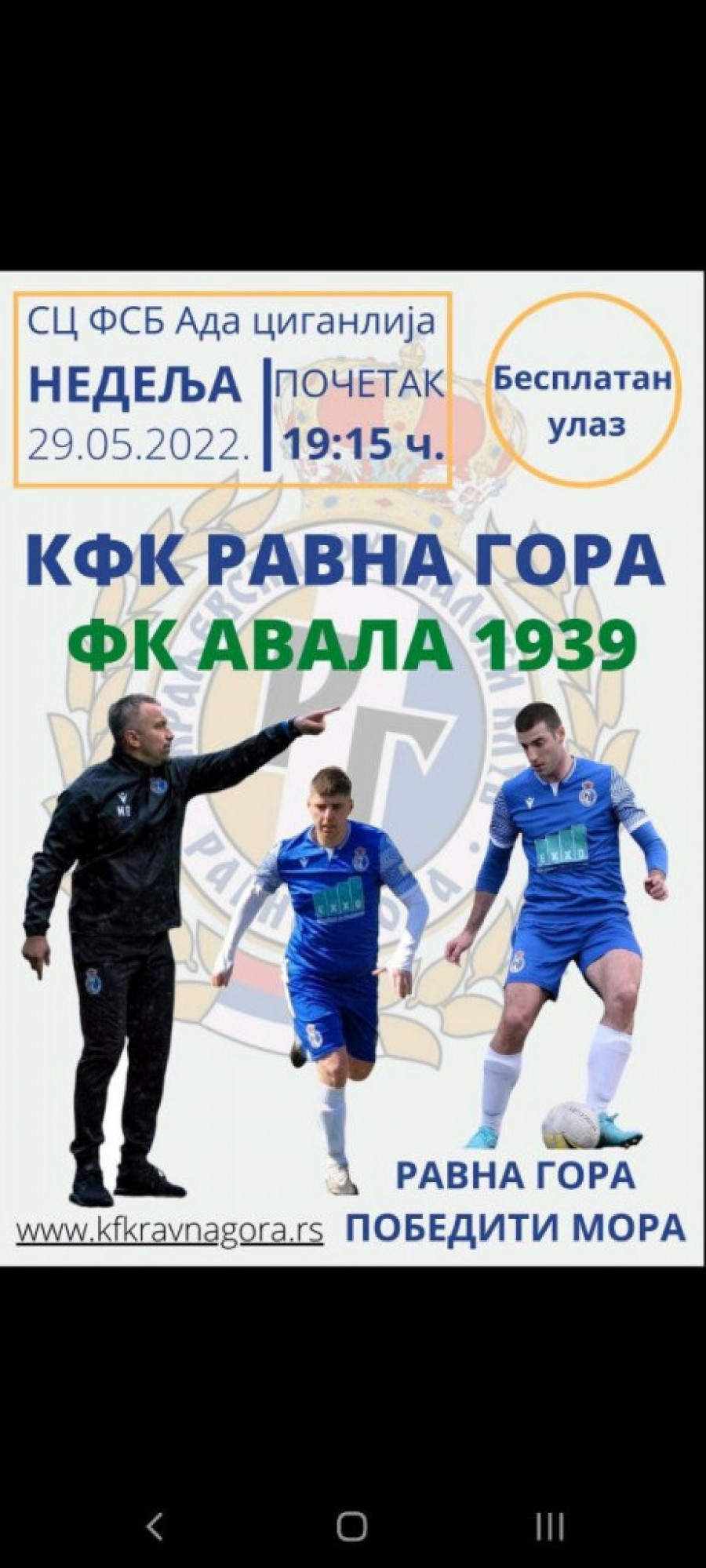 Kraljevski fudbalski klub Ravna Gora ima bod prednosti (64) i ugostiće drugoplasiranu Avalu na terenima FS Beograda na Adi Ciganliji u nedelju od 19.15 sati.