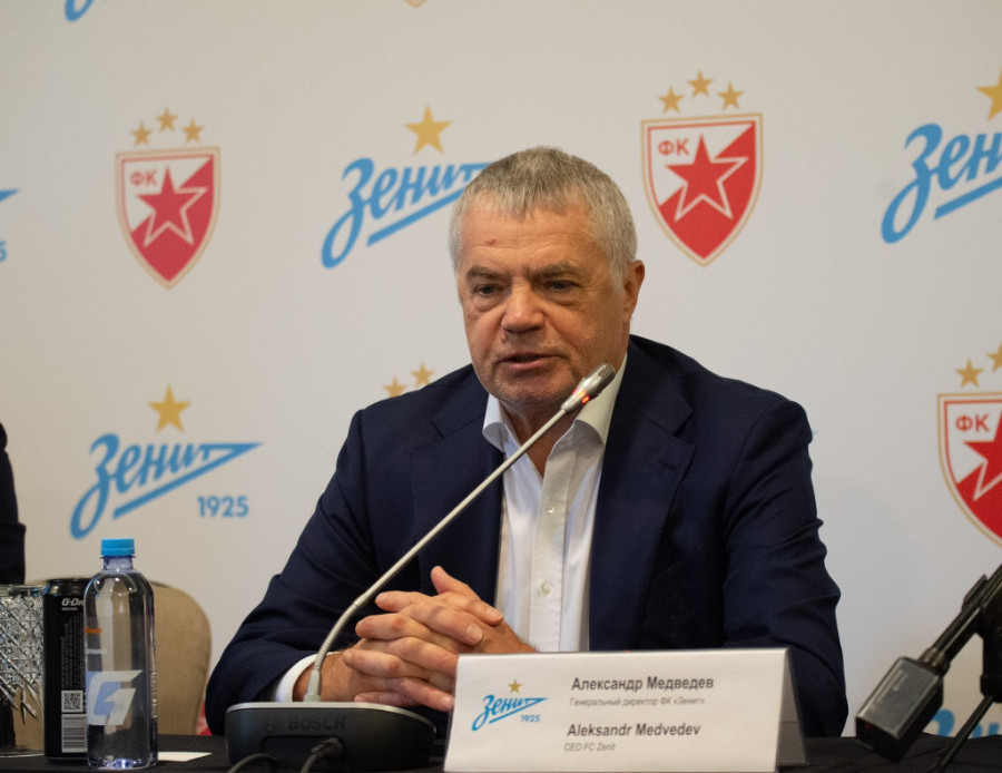 - Danas je potpisan produžetak ugovora sa Crvenom zvezdom i on će obuhvatati saradnju na svim nivoima kluba, od omladinskih selekcija, do seniorskog tima, saradnje među stručnim kadrom, organizovanje turnira, zajedničke posete, ali i prijateljske utakmice kada kalenadr to dozvoli. Verujem da će se uz odgovarajući trud uvek naći termin da igramo prijateljske utakmice. Volim Beograd, mnogo puta sam bio tamo, bilo bi lepo da igramo pred Zvezdinim navijačima koji su poznati i priznati, ne samo u Evropi, već i širom sveta. Takođe, ugovor je i pokazatelj prijateljstva između srpskog i ruskog naroda. To pokazuje da su naši odnosi bratski, a svi znamo da je sport veoma važan segment društva. Srpski muzičari, glumci, umetnici su jako popularni u Rusiji, to pokazuje takođe dobre odnose naroda. Što se današnje utakmice tiče, mislim da slogan: "Bitka šampiona", sve jasno govori. Zenit je osvojio četiri titule u nizu, Crvena zvezda pet, i suvereni smo šampioni u našim državama. Nivo fudbala u Rusiji i Srbiji je izuzetno velik i javnost je sigurno zainteresovana za utakmicu. Što se tiče pobednika - ko bude ko bolji danas, neka trijumfuje - rekao je Aleksandar Medvedev.
