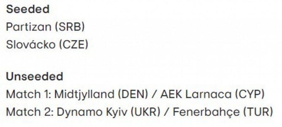 Treba npaomeuti da je već sada poznat i spisak potencijalnih rivala crno-belih u eventulanom plej-ofu. Na toj listi se nalaze belgijski Gent, bečka Asutrija, Harts iz Edinburga, kiparska Omonija, turski Sivas, Dnjepar iz Ukrajine i danski Silkeborg.
