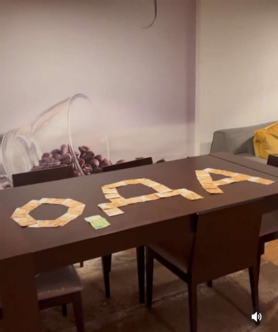Može se prebrojati da je Vuletić za poruku na stolu iskoristio 31 novčanicu od 50 evra koje su formirale slova, dok jedna od 100 predstavlja zarez. To je ukupno 1.650 evra korišćeno za bahaćenje.