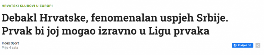 Hrvatski "Indeks" je potonuće Hrvatske, ali i rast Srbije analizirao u tekstu pod nazivom "Debakl Hrvatske, fenomenalan uspeh Srbije. Prvak bi joj mogao direktno u Ligu šampiona".