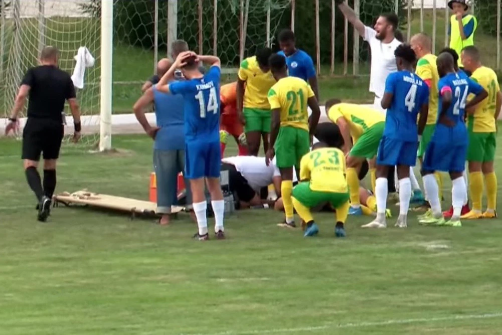 Lekarska ekipa je odmah utrčala na teren, a posle ukazane prve pomoći fudbaler je hitno prevezen u bolnicu i nalazi se u teškom stanju.