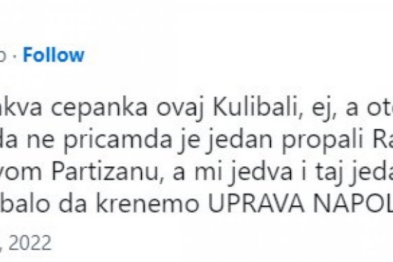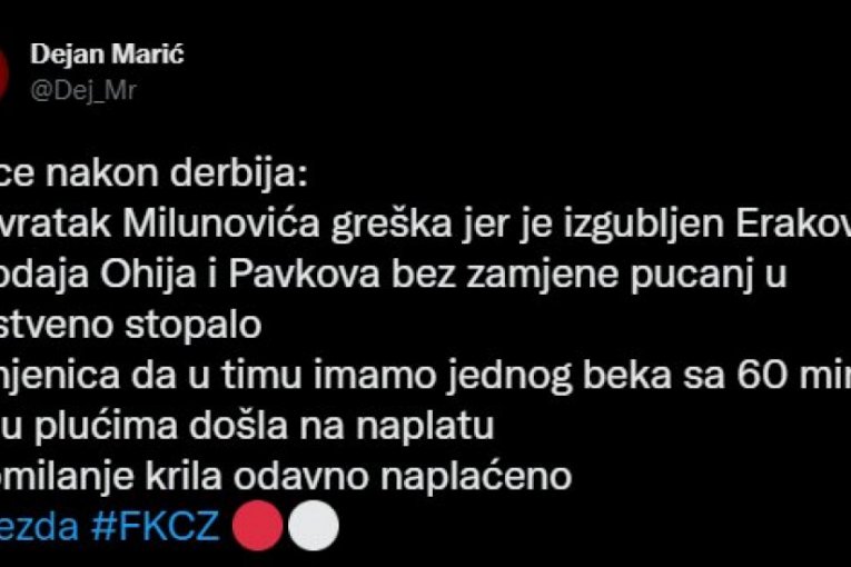 potpuno je jasno da pristalice kuba sa beogradske "Marakane" ne žele više da gledaju bojažljivu igru svojih ljubimaca kada su dueli sa Večitim rivalom u pitanju, a posebno se ističe jedan korisnik Tvitera koji je na ovo društvenoj mreži napiao: