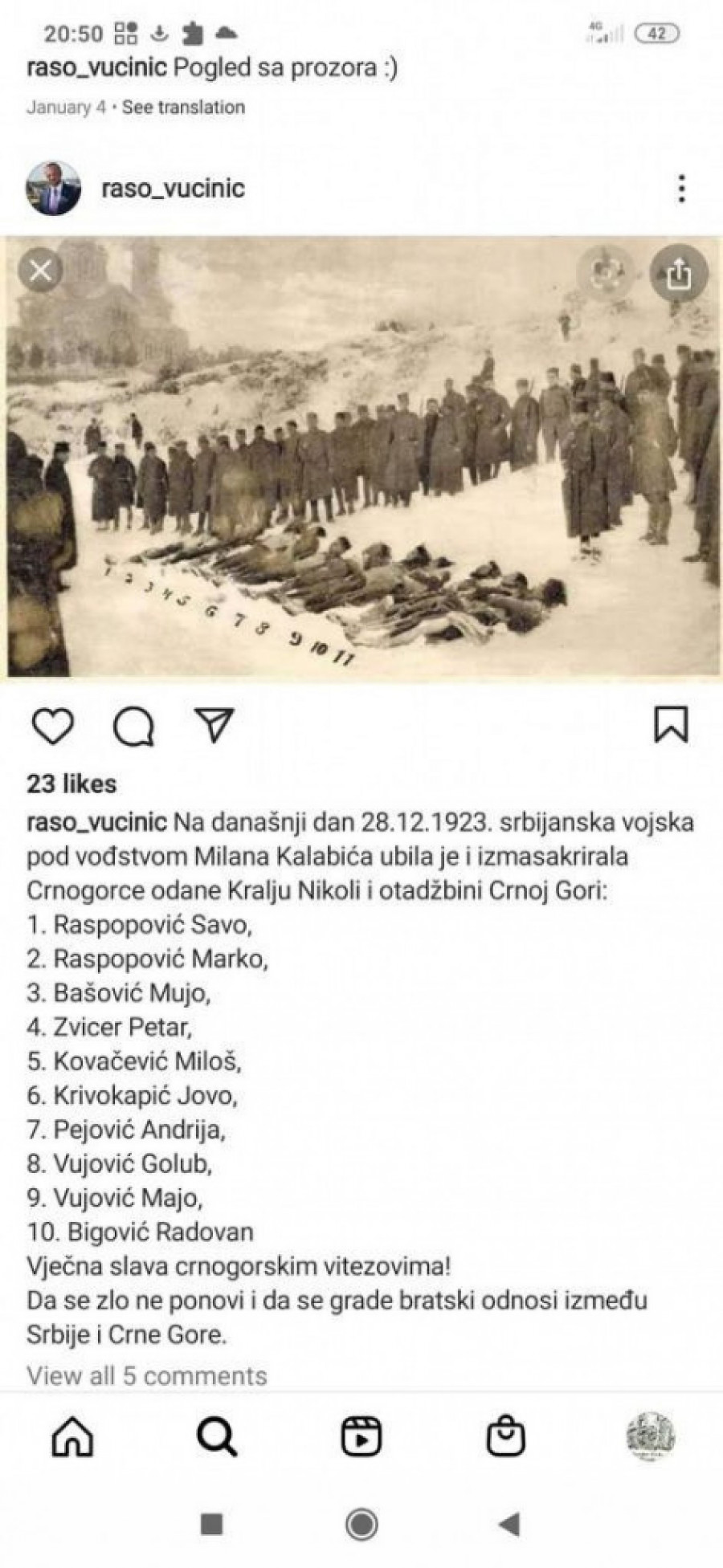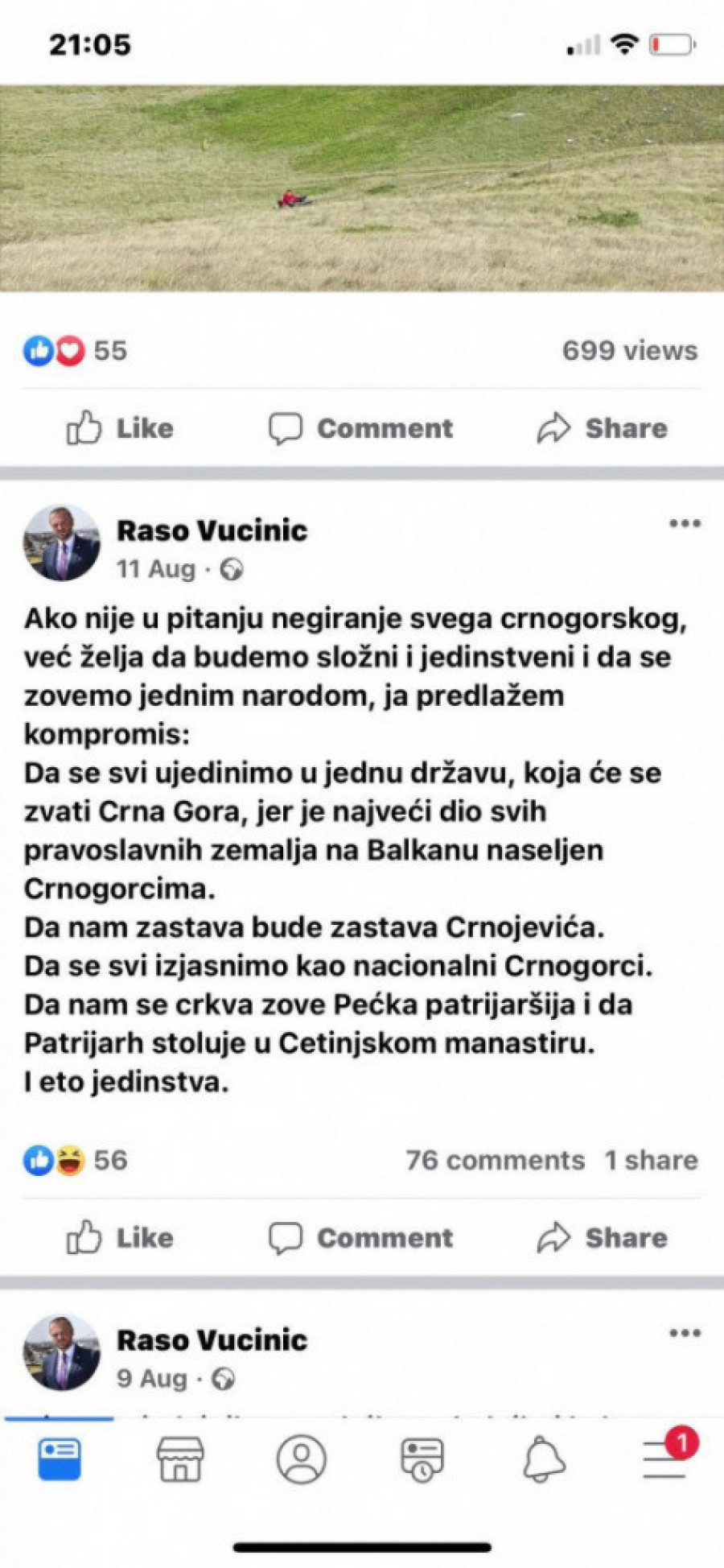 Na socijalnim mrežama Vučinić deli objave kojih se ne bi postidle ni najveće ustaše. Tako na primer u jednoj svojih objava Vučinić se zalaže da se SPC ukine, da se ostavi naziv Pećka patrijaršija a da patrijah stoluje na Cetinju. Uz to on dodaje da bi si trebali da se izjasne kao Crnogorci.