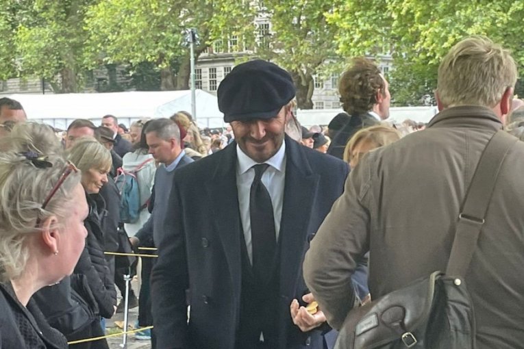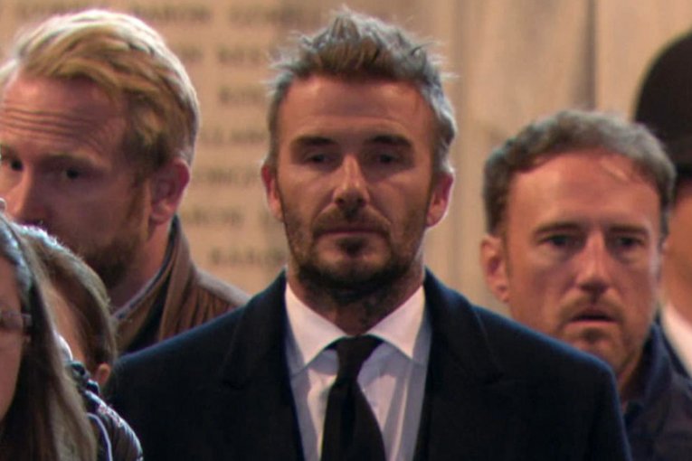 On je, kako prenosi "Sky news" nako 13 časova čekanja u redu prošao pored kovčega upokojene kraljice, a kako ističu britanski mediji Dejvid Bekam je prilikom prilaska kovčegu pognuo glavu i pustio suzu.