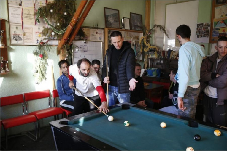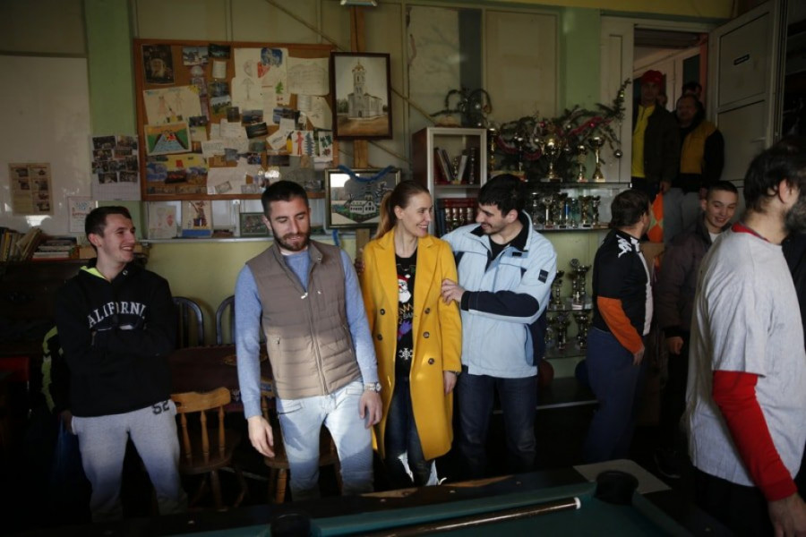 Foto: Miroslav TodorovićZoran Tošić, Bojan Ostojić i Ognjen Ožegović su svojim novim prijateljima čestitali minule praznike i doneli im garderobu sakupljenu u humanitarnoj akciji crno-belih. Bilo je tu i slatkiša, a kako bi sagoreli unete kalorije i šećer, igrači aktuelnog šampiona Srbije su sa svojim domaćinima igrali fudbal, košarku, ali i odmerili snage u bilijaru. Kada se saznalo da će tim Ustanove učestvovati na Sportskoj olimpijadi u Malmeu, Partizan je zahvaljujući svom tehničkom sponzoru Najkiju doneo i deset pari patika momcima koji će se nadmetati u Švedskoj.