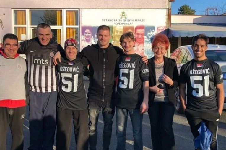 Osmesi, praznični i sportski duh preplavili su Sremčicu. Korisnici Ustanove za decu i mlade imali su priliku da se jedan dan druže sa fudbalerima Partizana.