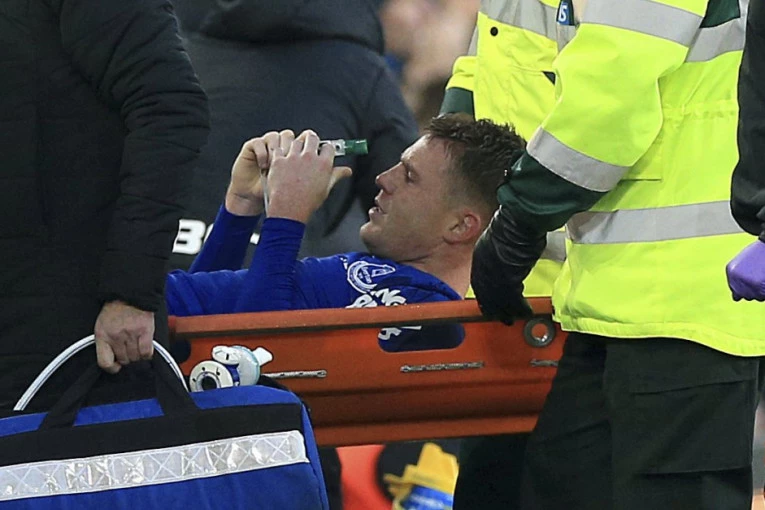 Užasna scena na "Gudison parku" u meču Premijer lige između Evertona i VBA. Fudbaler "Karamela" Džejms Mekkarti doživeo je tešku povredu nakon koje je iznet na nosilima sa terena uz bolnu grimasu na licu.