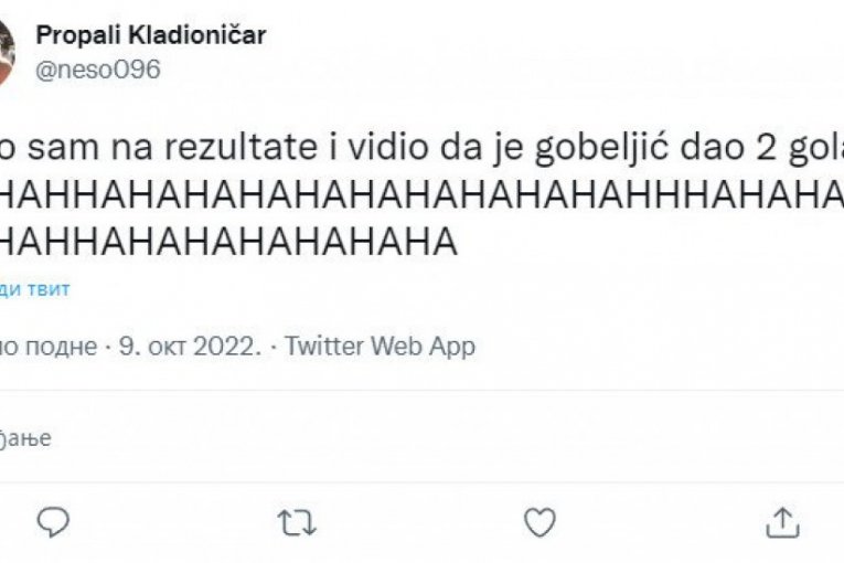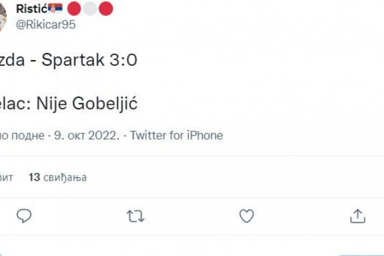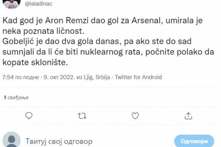 "Kad god je Aron Remzi dao gol za Arsenal, umirala je neka poznata ličnost. Gobeljić je dao dva gola danas, pa ako ste do sad sumnjali da li će biti nuklearnog rata, počnite polako da kopate sklonište", "Arsenal i Marko Gobeljic vise nisu predmet sprdnje!", "Gobeljić skapirao da je Liverpul u kanalu sa desnim bekom, pa rešio da zaigra. Čeka se zima", "Zvezda - Spartak 3:0 Strelac: Nije Gobeljić", samo su neki od komentara koje smo mogli da pročitamo.