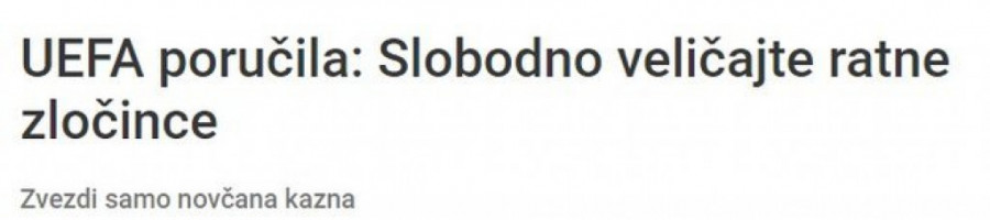 Foto: printscreen/index.hr- UEFA poručila: Slobodno veličajte ratne zločince - naslov je teksta na ovom portalu.