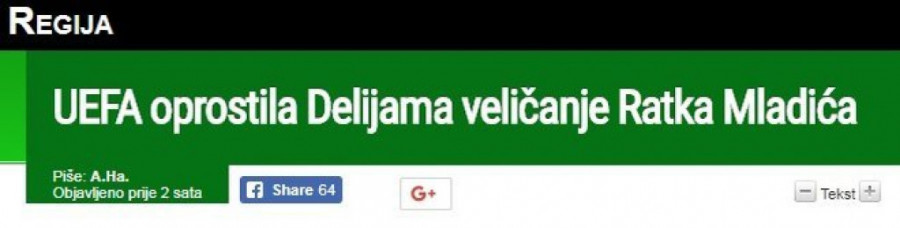 - UEFA oprostila "delijama" veličanje Ratka Mladića.