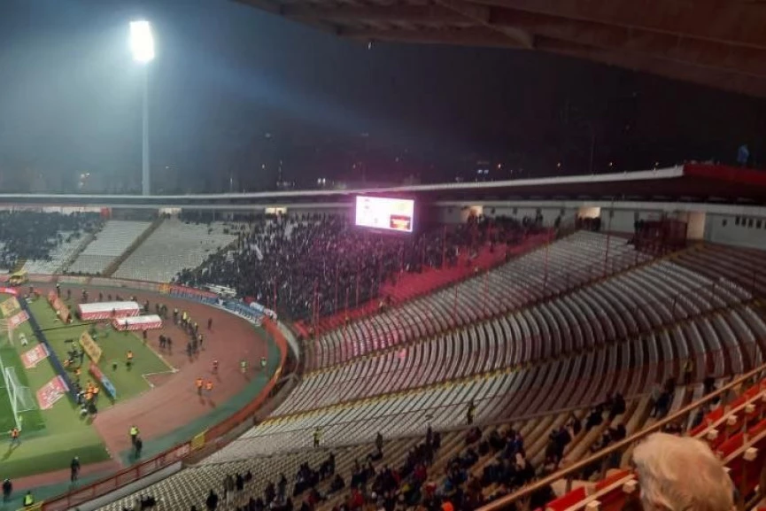 Fudbaleri Crvene zvezde ekspresno su poveli u 169. večitom derbiju, a čim je počela utakmica na južnoj tribini stadiona "Rajko Mitić" viđene su nemile scene.