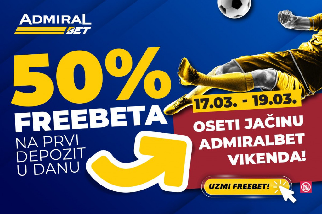 Uzbuđenja se očekuju i u petak i subotu, ali će sav fokus ipak biti usmeren na nedeljni program, a kako bi zabava tokom vikenda dostigla vrhunac AdmiralBet je za sve svoje igrače spremio neponovljivih 50% freebet bonusa na prvu dnevnu uplatu depozita. Promocija je aktuelna od 17. do 20. marta, a dodatni freebet je dostupan svakog dana promocije.