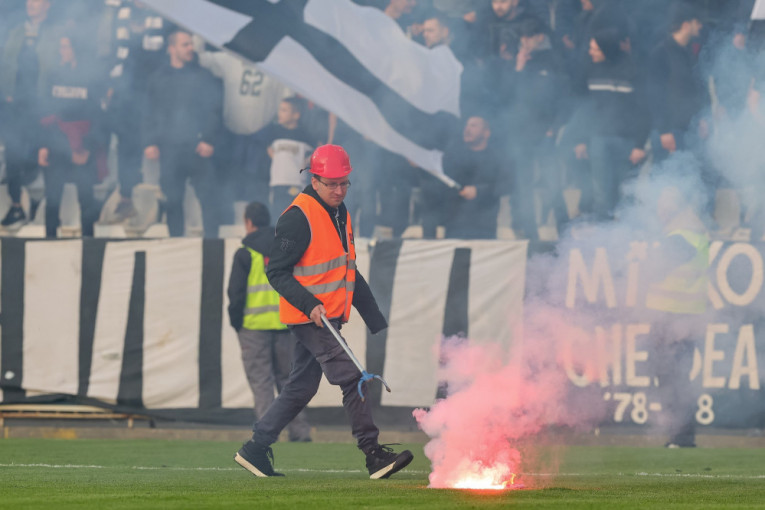Grobari su ubacivanjem pirotehničkih sredstava na teren, više puta onemogućili da se duel odvija u normalnim uslovima, pa je reagovao sudija Milan Mitić.