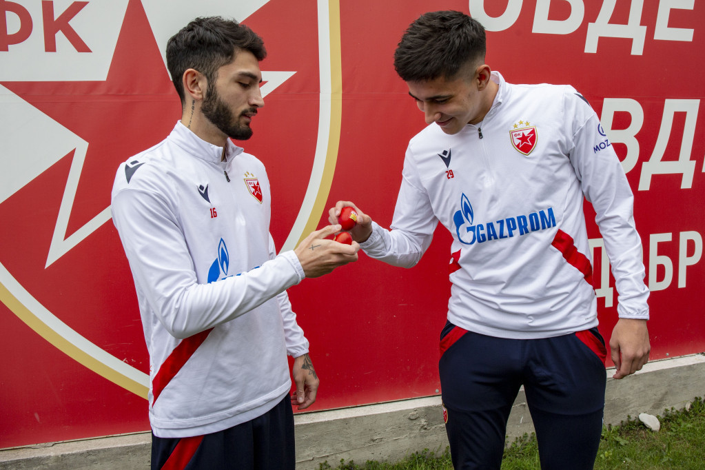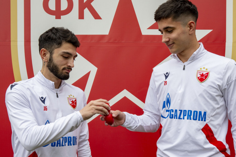 Vaskrs, leta gospodnjeg 2023, Beograd, Srbija. Vernici Srpske pravoslavne crkve proslavljaju, uz Božić, najznačajniji praznik, a gotovo identične običaje, tradiciju i kulturne baštine imaju mladi fudbaleri Crvene zvezde Jegor Prucev (20) i Irakli Azarov (21). Stoga, ruski i gruzijski fudbaler domaćinima i prijateljskom srpskom narodu putem portala Republika.rs uglas poručuju: "Braćo Srbi, Hristos vaskrse".