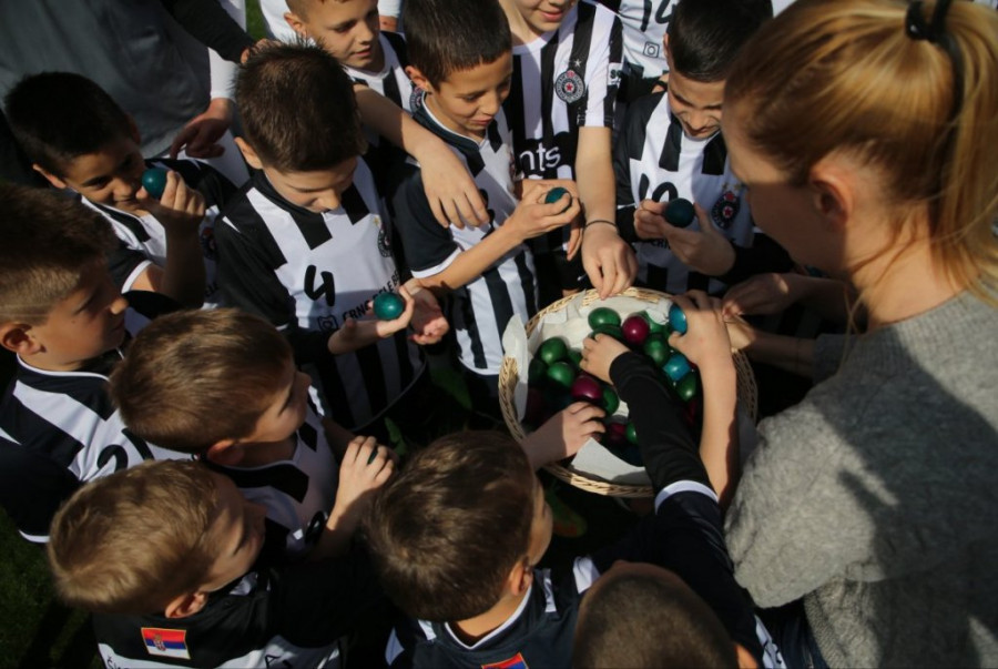 Simbol novog početka i večnog života u veri i miru crno-beli su proslavili kao velika porodica, te su ulepšali dan svim klincima koji sanjaju da jednog dana zaigraju u seniorskom timu Partizana.