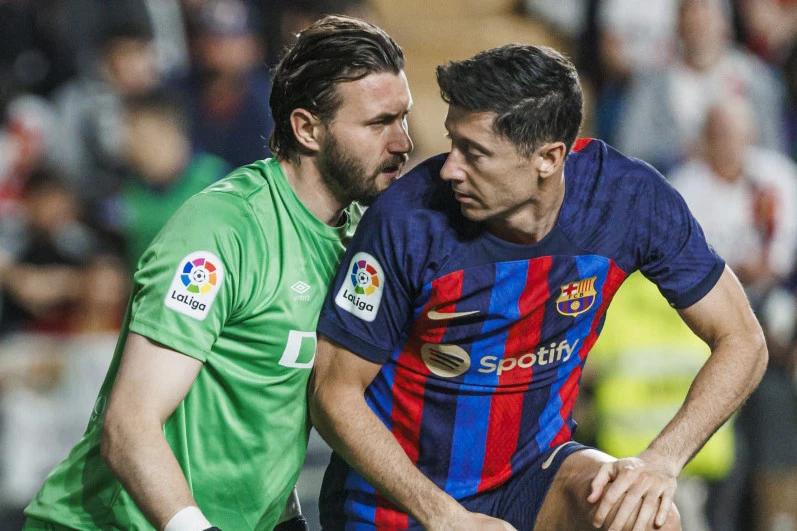 Imao je poljski reprezentativac priliku i da u prvom delu izjednači rezultat, ali je njegov gol u 42. minutu poništen posle ofsajda na dodavanje Pedrija, koji je poslao loptu kroz sredinu odbrane tima iz Valjekasa. Usledio je poziv iz VAR sobe, sudija Hesus Hil Manzano je dobio sugestiju da se golgeter Katalonaca nalazio u nedozvoljenoj poziciji.