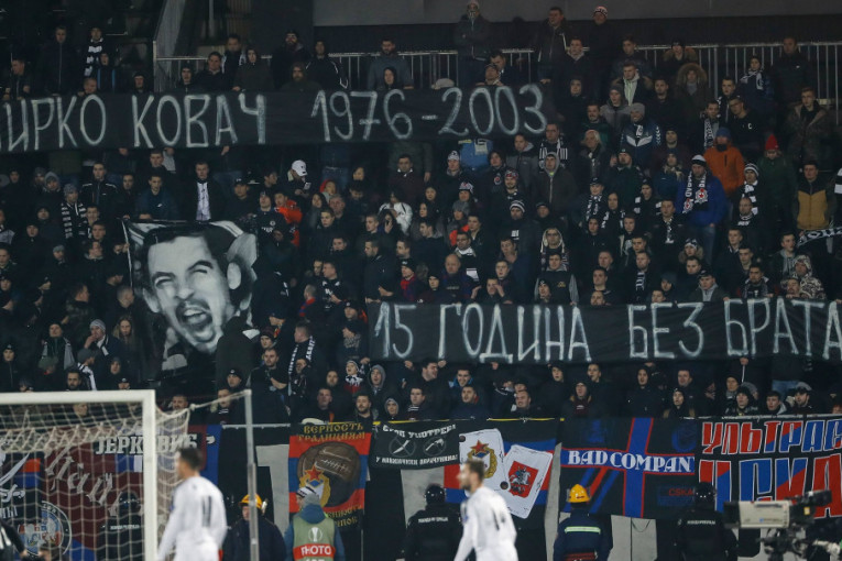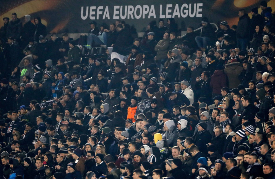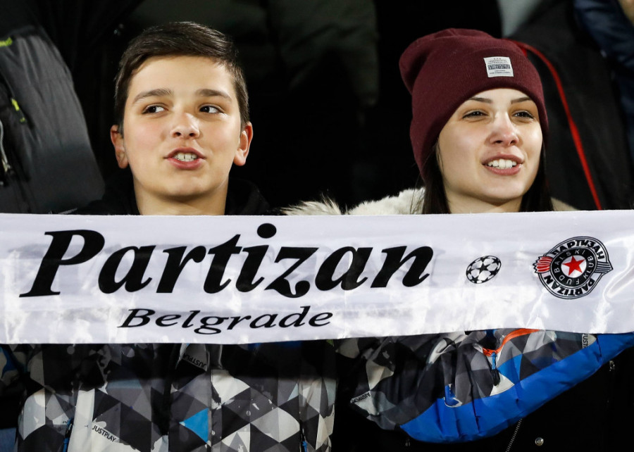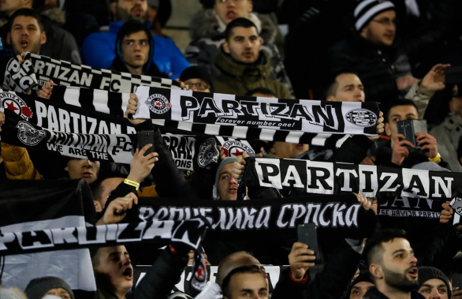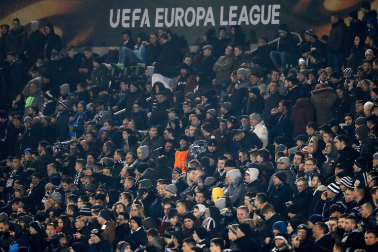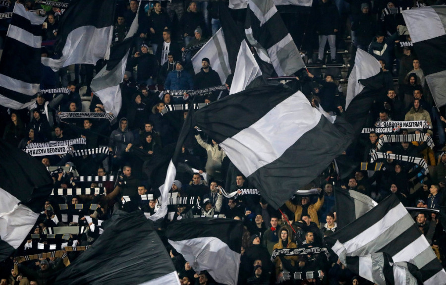 23. minut - Navijači Partizana daju podršku fudbalerima crno-belih. Na tribinama je nešto više od 20.000 navijača