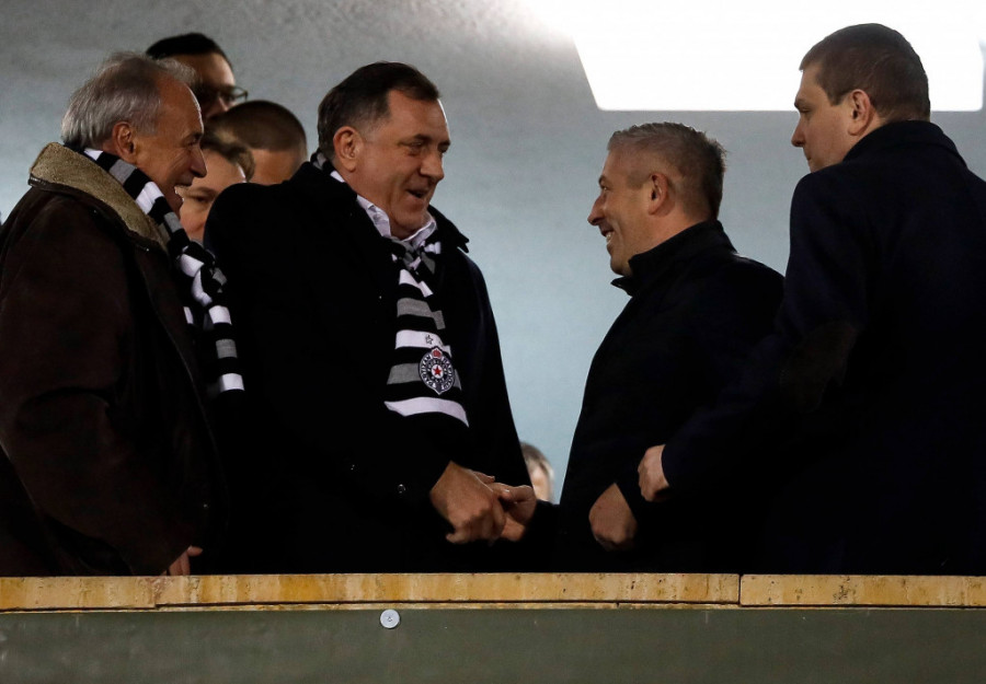 Na tribinama su predsednik Republike Srpske Milorad Dodik i prvi čovek FSS Slaviša Kokeza.