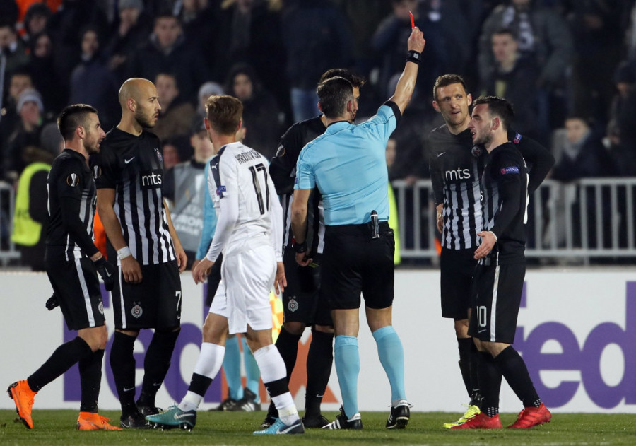 85. minut - Partizan ostaje sa igračem manje. Mitrović je dobio drugi karton zbog prekršaja na sredini terena.