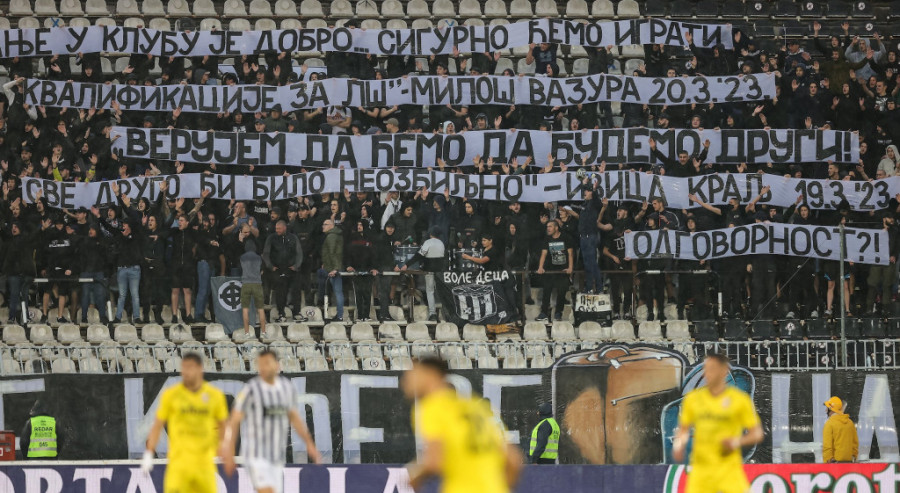- "Stanje u klubu je dobro. Sigurno ćemo igrati Ligu šampiona", Miloš Vazura, 20. 03. 2023. "Verujem da ćemo da budemo drugi, drugo bi bilo neozbiljno", Ivica Kralj, 19. 03. 2023. Odgovornost?! - pisalo je na transparentu grobara, koji su podsetili na izjave čelnika crno-belih.
