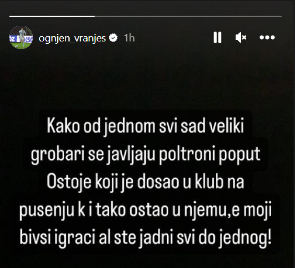 Očigledno se Vranješ našao prozvanim zbog ove poruke, a nije mu puno trebalo da odgovori, preko Instagram storija.