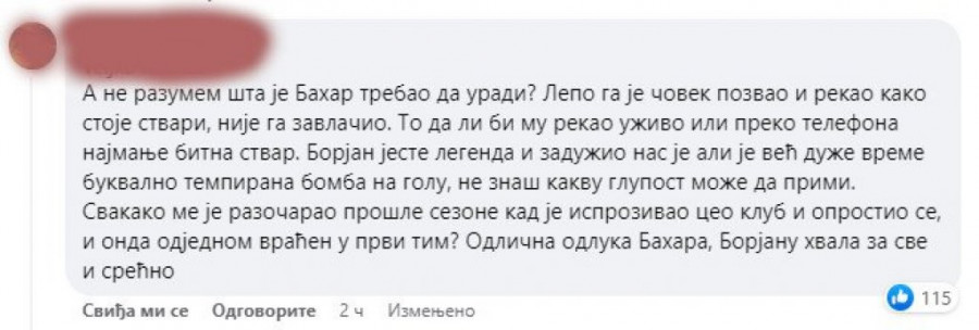 Komentar navijača na odluku Bahara da skloni Borjana sa gola
