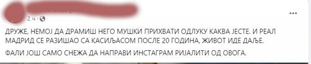 "Druže, nemoj da dramiš nego muški prihvati odluku kakva jeste. I Real Madrid se razišao sa Kasiljasom posle 20 godina, život ide dalje. Fali još samo Sneža da napravi Instagram rijaliti od ovoga", napisali su oni.