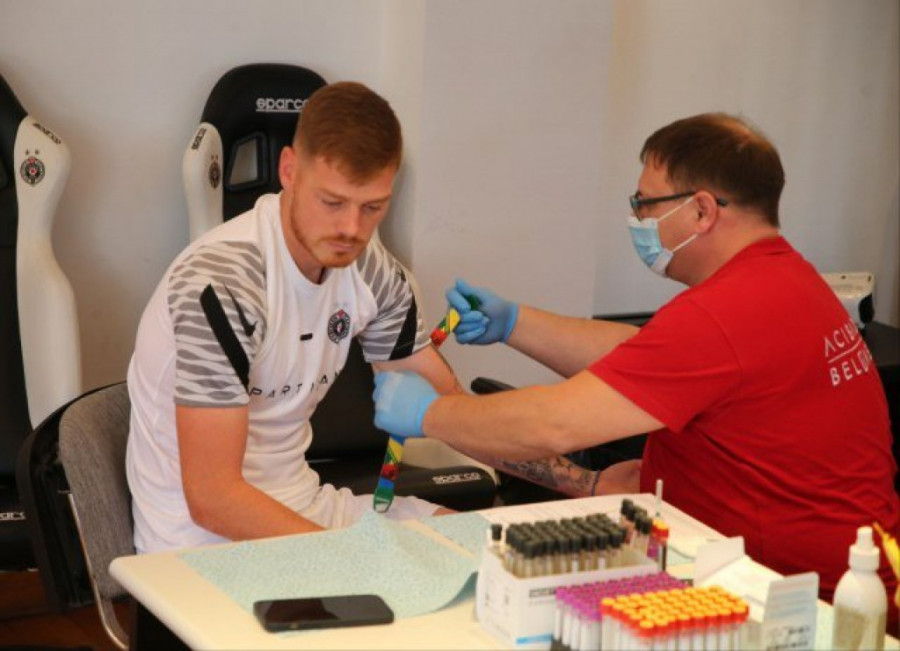 Posle analiza krvi koje je, tradicionalno već, radilo medicinsko osoblje "Opšte bolnice Acibadem Belmedic", prvotimci su trening počeli u teretani.