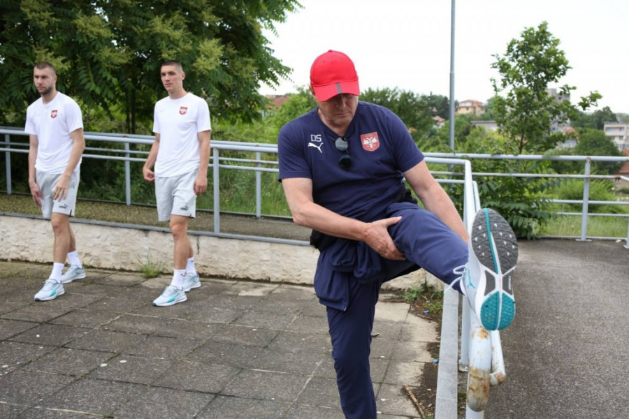 Odlična atmosfera vlada među "orlovima" koji spremno dočekuju večerašnju utakmicu, a nasmejan je bio i selektor Stojković koji je radio vežbe sa igračima.