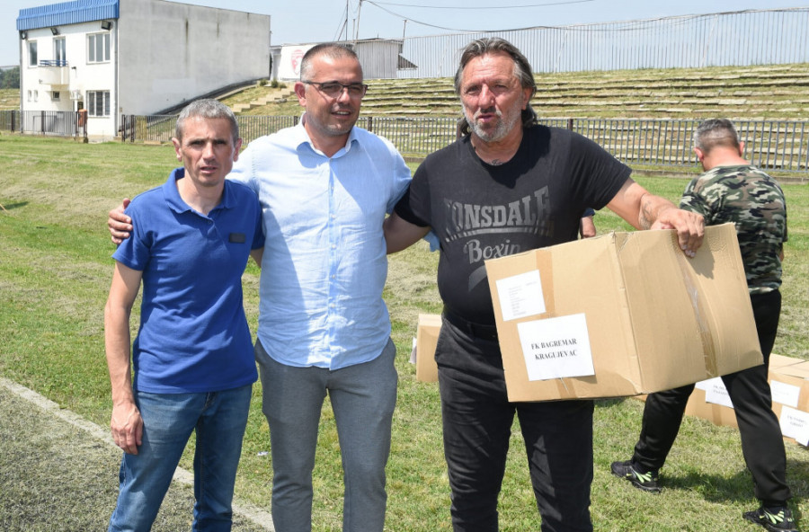 Oprema je danas stigla i u Kragujevac, svečano je bilo na „Čika Dači“ gde su u prisustvu čelnih ljudu FSS i FS RZS predstavnici 45 klubova primili donaciju FSS. Potpredsednik FSS Branislav Nedimović, generalni sekretar Jovan Šurbatović, prvi čovek FSRZS Nebojša Živanović, predsednik GFS Kragujevca Slavko Perović... Svi oni uveličali su važan dan za klubove sa teritorije grada Kragujevca.