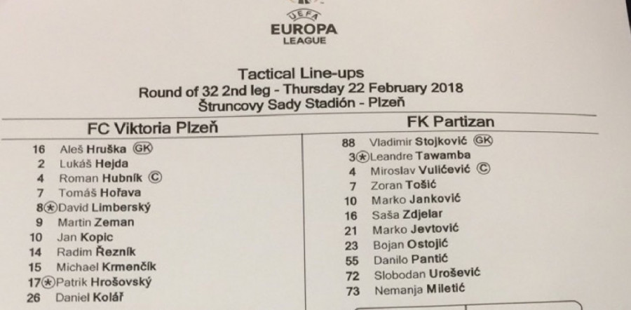 Fudbaleri Partizana poraženi su u Plzenju od Viktorije rezultatom 2:0, čime su završili učešće u Ligi Evrope.