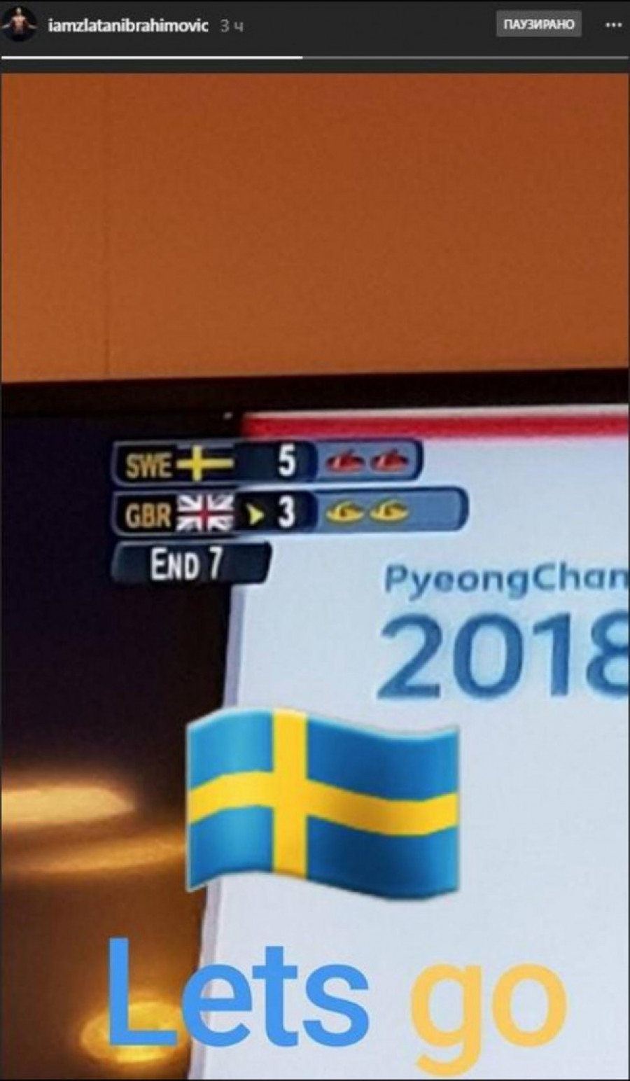 Sjajni špic Mančester junajteda Zlatan Ibrahimović iskoristio je pauzu od treninga u Engleskoj da pruži podršku karling reprezentaciji Švedske na Zimskim olimpijskim igrama u Pjongčangu.