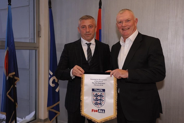 Foto: twitter.com/Fudbalski savez Srbije-Poseta koja bi mogla da ima prefiks istorijska, jer prvi put u goste Fudbalskom savezu Srbije došao je predsednik zemlje kolevke fudbala, Engleske. Greg Klark, prvi čovek Fudbalskog saveza Engleske u znak poštovanja prema FSS stigao je u posetu koja bi trebalo da predstavlja početak jedne lepe saradnje.