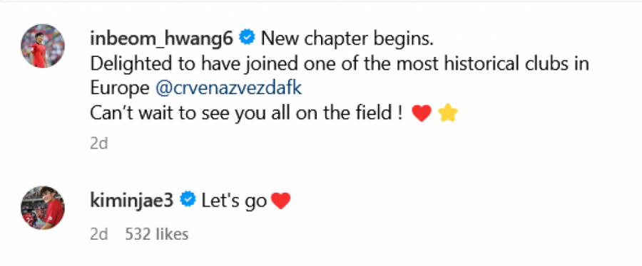 In Beom Hvang nedavno je stigao u Crvenu zvezdu kao veliko pojačanje. Reprezentativac Južne Koreje i doskorašnji vezni fudbaler Olimpijakosa došao je za rekordnih 5.000.000 evra na Marakanu, a poruke podrške stižu mu sa svih strana.