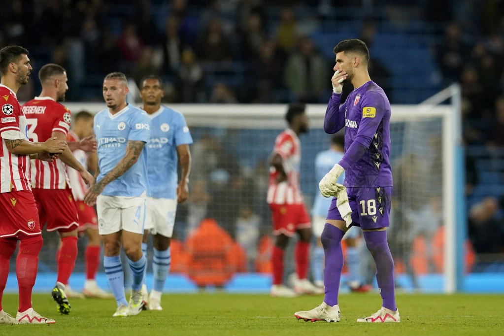 Fudbaleri Crvene zvezde nisu uspeli da naprave senzaciju i da savladaju Mančester siti u prvom kolu Lige šampiona, iako su vodili na poluvremenu. Na kraju, "građani" su slavili sa 3:1.
