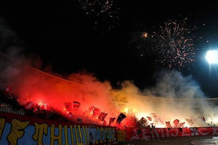 U simboličnom, 73. minutu susreta za Voždovcem, navijači Crvene zvezde su bakljadom i vatrometom obeležili rođendan SD Crvena zvezda.
