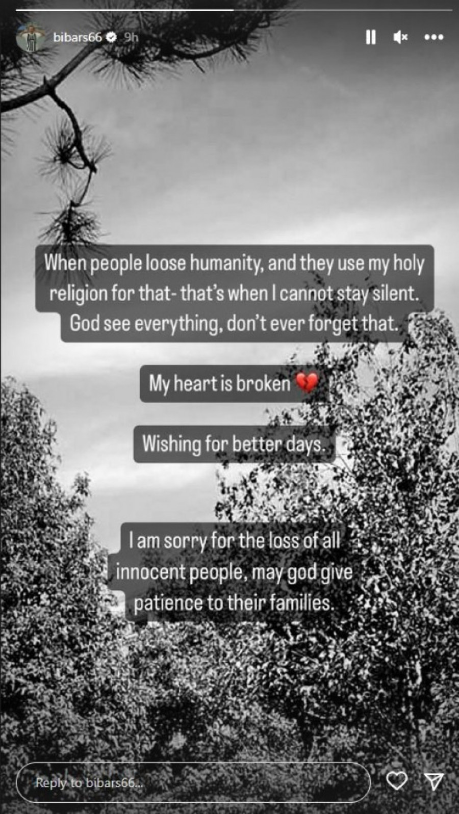 - Kada ljudi izgube humanost i kada koriste moju svetu religiju za tako nešto, tada ne mogu da ćutim. Bog vidi sve, nemojte to da zaboravite. Moje srce je slomljeno. Priželjkujem bolje dane. Žao mi je zbog mnogih izgubljenih nevinih života, neka Bog podari blagostanje njihovim porodicama - poručio je Natho putem Instagrama.