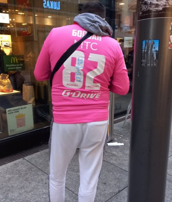 Upravo jedan od takvih navijača bodriće izabranike Baraka Bahara u Lajpcigu protiv istoimenog kluba u trećem kolu Lige šampiona. Momka sa Borjanovim dresom republika je videla u centru Lajpciga, odakle je sa ostalim navijačima krenuo ka stadionu na meč koji počinje od 21 čas.