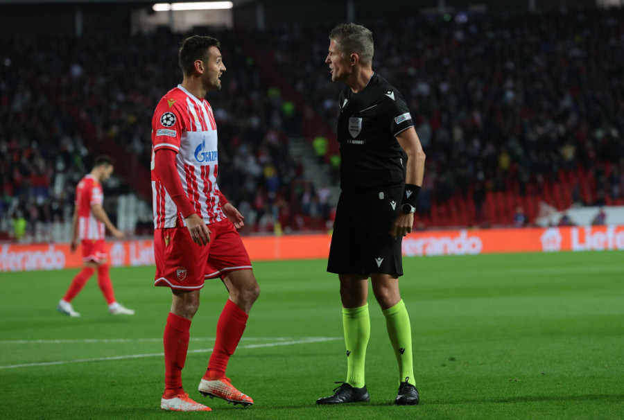 20. minut - Crveni karton za Vujadina Savića, nekadašnji kapiten Zvezde sada u ulozi pomoćnika je malo žustrije reagova s klupe domaćih pošto je Openda izleteo s terena, usledio je manji kontakt, pa je Orsato pokazao Baharovom članu stručnog štaba isključenje.